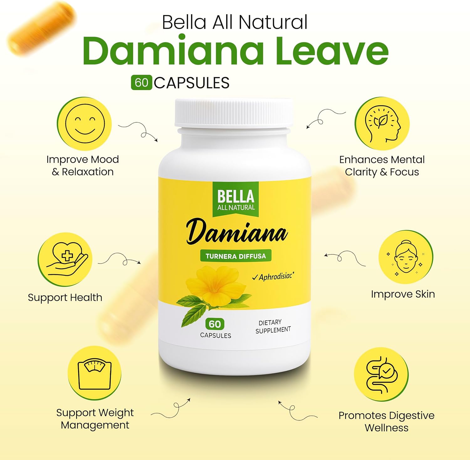No. Damiana es 100% natural y ha demostrado ser segura. A diferencia de tratamientos hormonales sintéticos, no tiene efectos secundarios adversos. Es importante seguir la dosis recomendada y consultar con tu médico si tienes condiciones preexistentes.